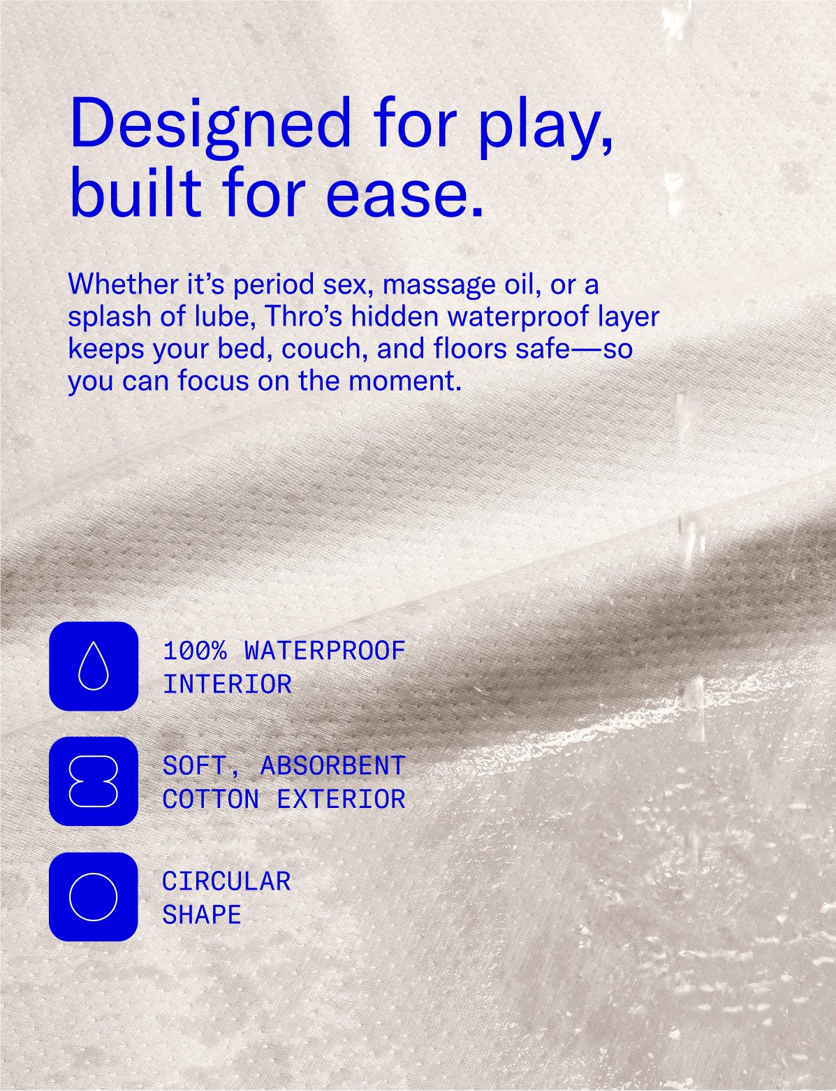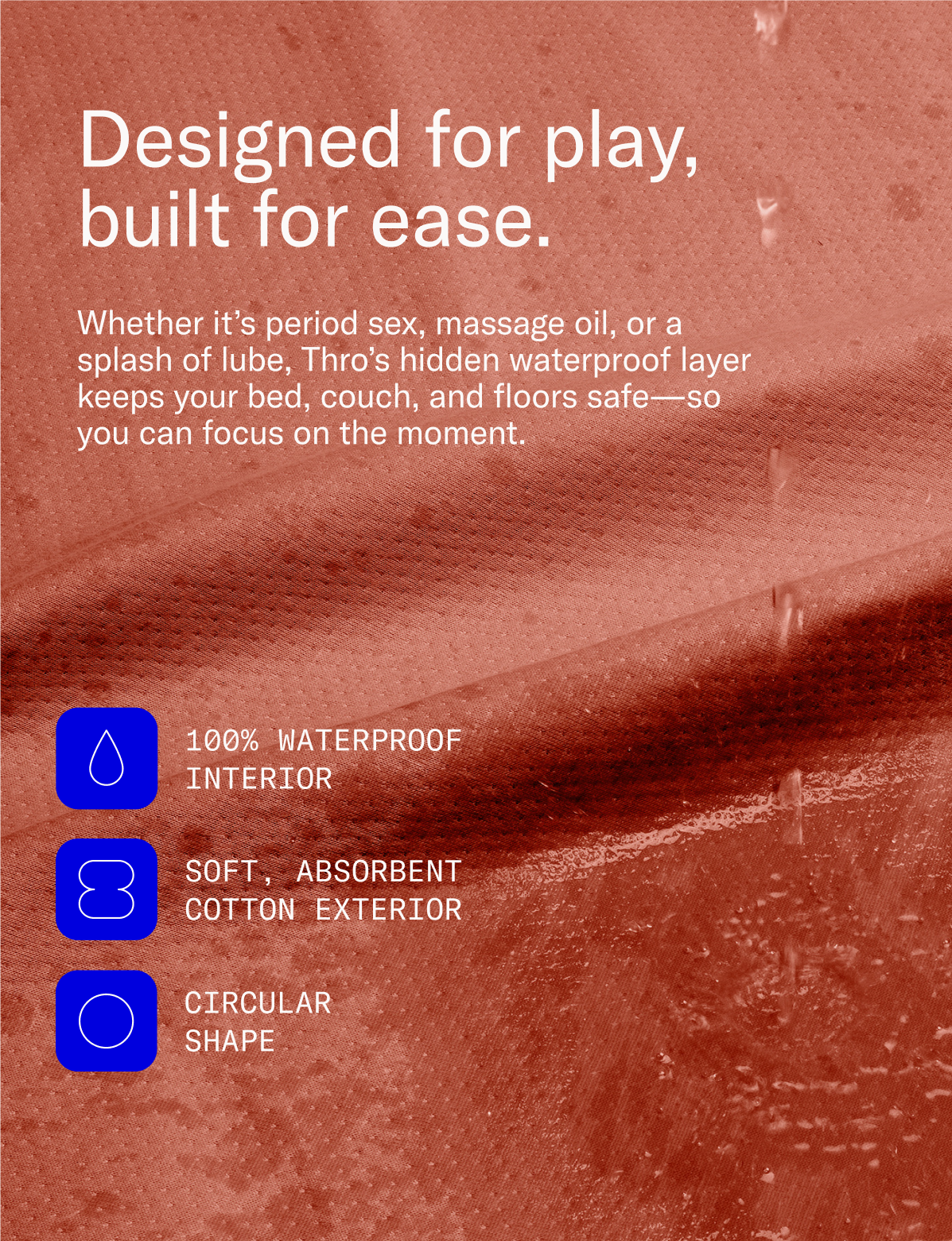 Made from ultra-soft cotton, Thro is a circular sex blanket with a hidden waterproof layer that keeps things mess-free, and a pouch that keeps it travel-ready. Breathable and compact, it’s designed for whatever you’re into—from period sex to breakfast in bed, to picnic under the stars.