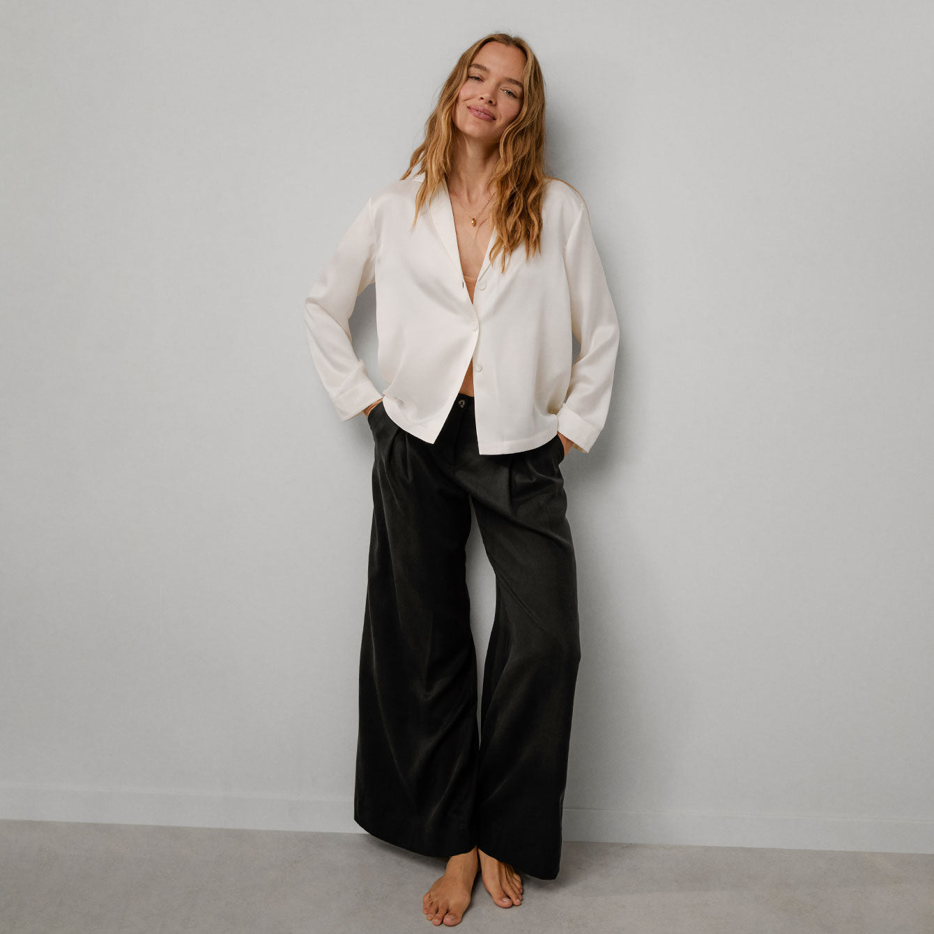 Consider the Washable Silk Button Up Long Sleeve your button-down upgrade. 100% Washable Silk, and cut to flatter without trying too hard. Tailored fit, silk-covered buttons, and a subtle back yoke adds just enough structure. Effortless, elevated and pairs with the our Washable Silk Boxer Short for a matching look. Or mix and match to your liking. Perfect for bridal prep, desk-less days, or any occasion that demands more than your average button-up.