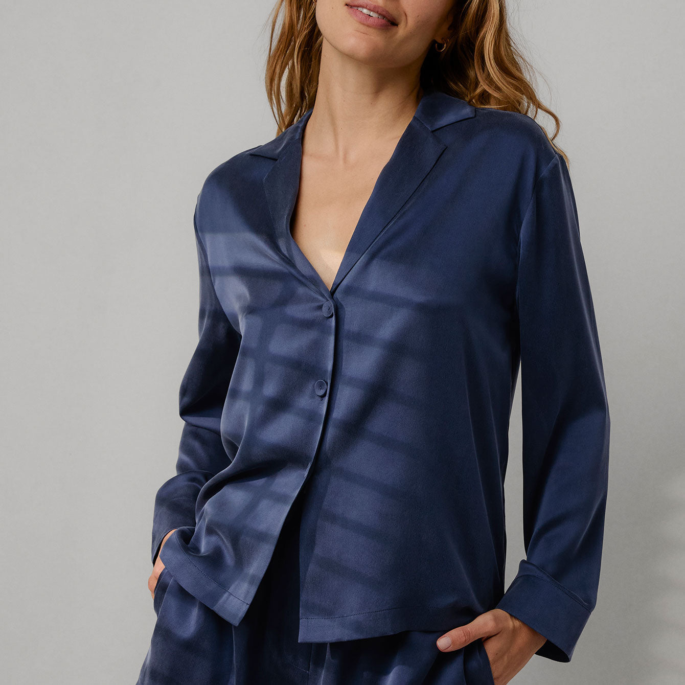 Consider the Washable Silk Button Up Long Sleeve your button-down upgrade. 100% Washable Silk, and cut to flatter without trying too hard. Tailored fit, silk-covered buttons, and a subtle back yoke adds just enough structure. Effortless, elevated and pairs with the our Washable Silk Boxer Short for a matching look. Or mix and match to your liking. Perfect for bridal prep, desk-less days, or any occasion that demands more than your average button-up.