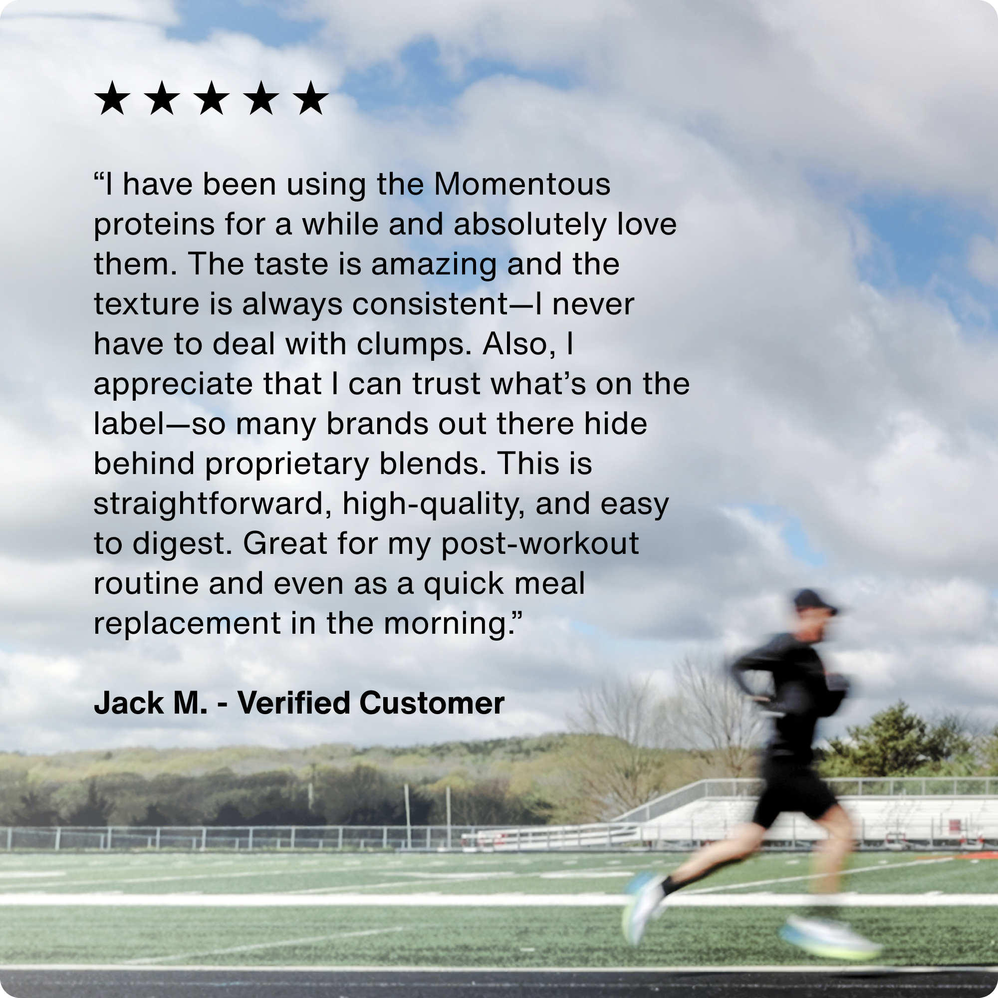 Momentous Whey Protein Isolate has long been trusted by those striving for more; backed by The Momentous Standard™, our #1 product delivers the highest quality ingredients and flavors with no compromise—no artificial ingredients, sweeteners, gums or fillers, just naturally-flavored options to keep your protein routine easy and fresh.