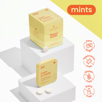 Find your moment of calm with Neuro Calm & Clarity Mints, a clean-label mental health supplement designed to ease tension while supporting focus and clarity. Each sugar free lozenge delivers GABA, L-theanine, and vitamin D3 to support mood, cognition, and nervous system balance.