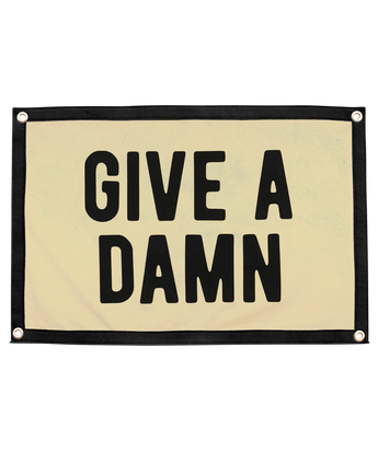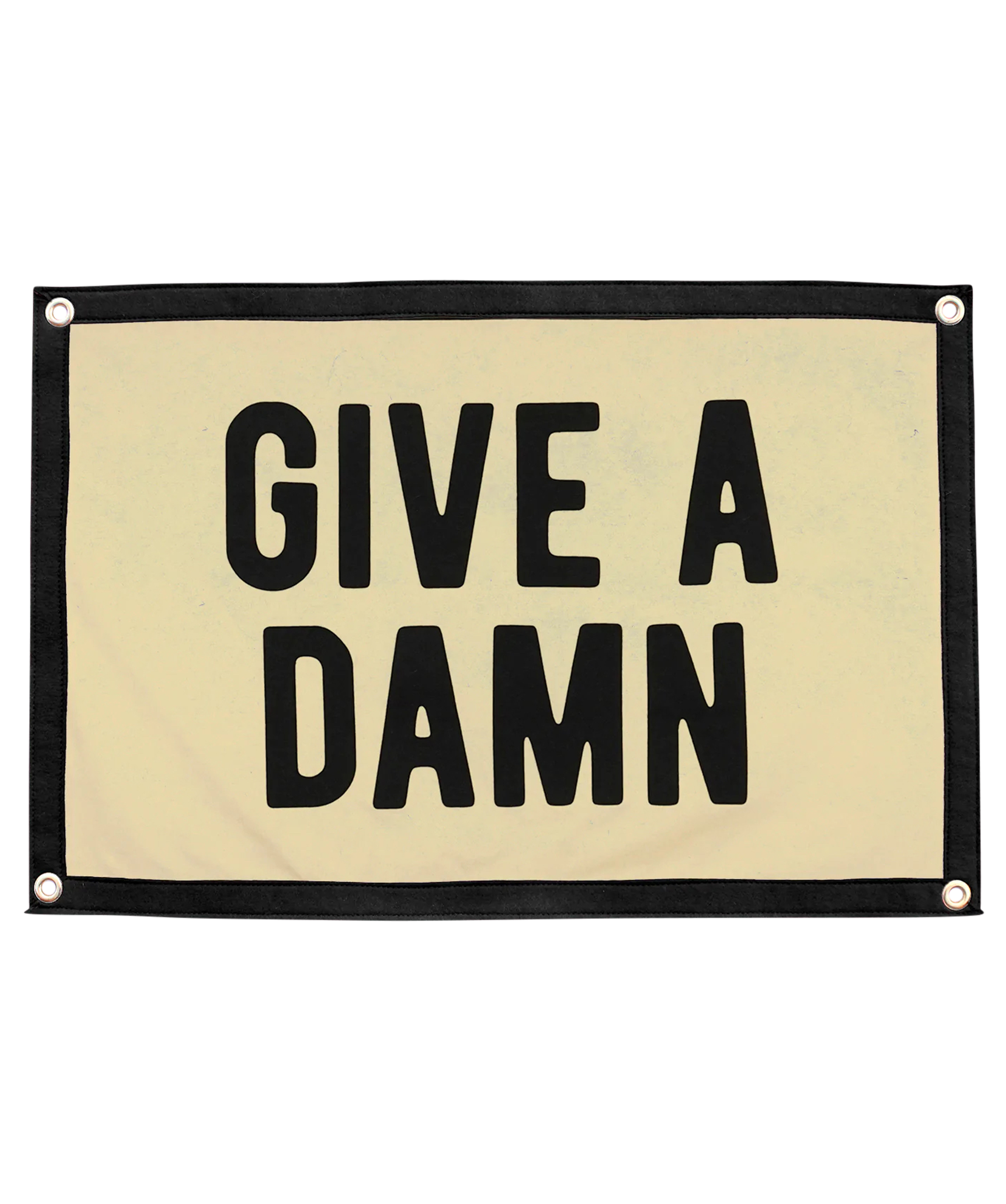 Don’t live life with an apathetic mindset. Find your passion, be kind to people, and care about the things going on in the world around you. Remind others to do the same with this cream and black camp flag.