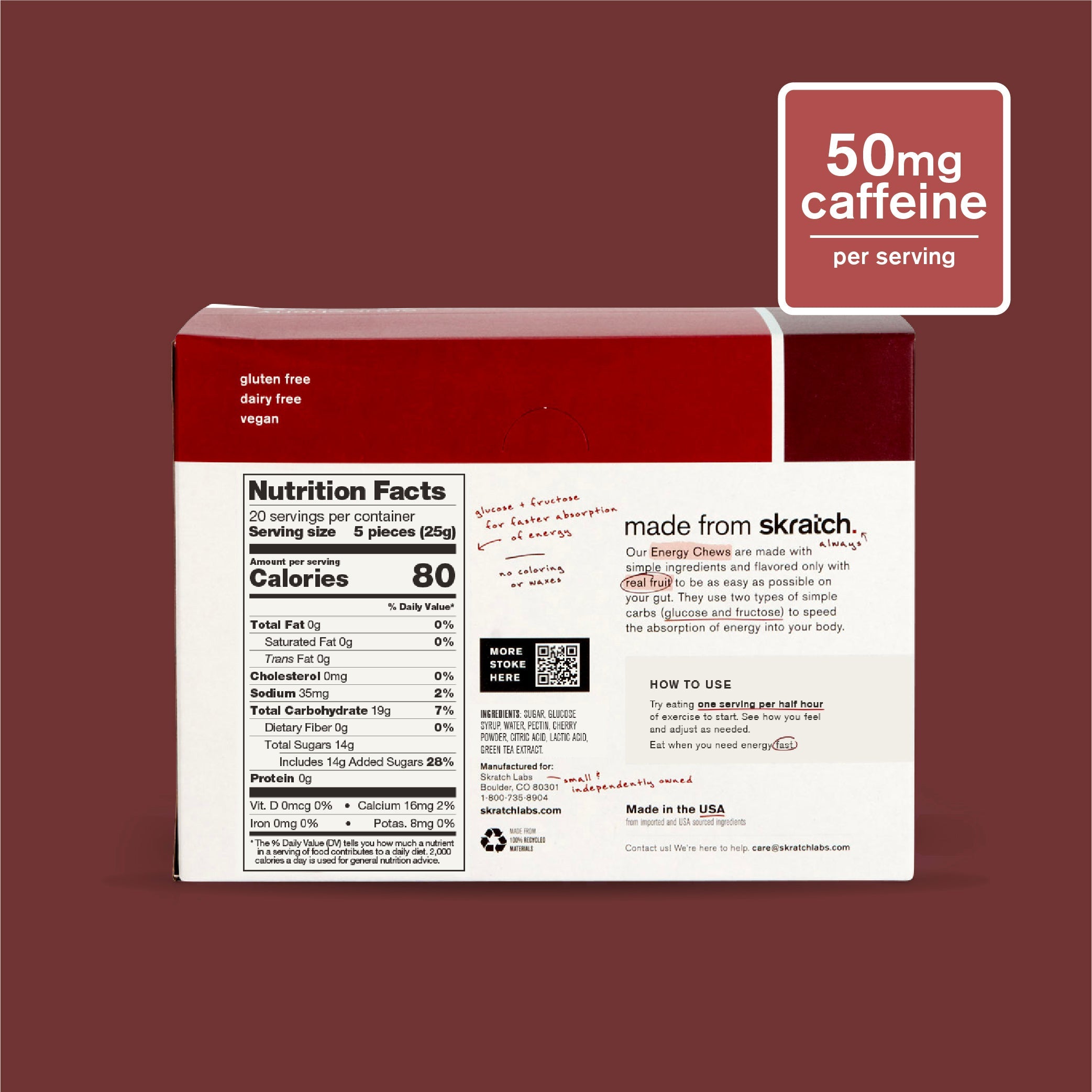 Energy Chews are an easy and convenient source of carbohydrate to help maintain blood sugar and performance during hard and long workouts. We use slightly more water for an improved texture that makes them easier to chew and only real fruit for flavor, for a clean, natural, and incredible taste. It’s like a gumdrop that’s actually a delicious high-performance fruit-drop.