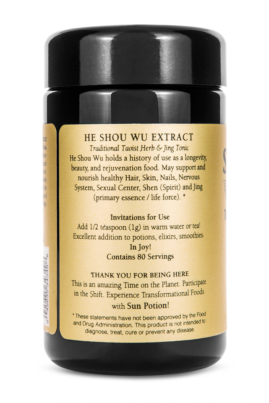 Ingredients: 10:1 extract of the prepared He Shou Wu root.