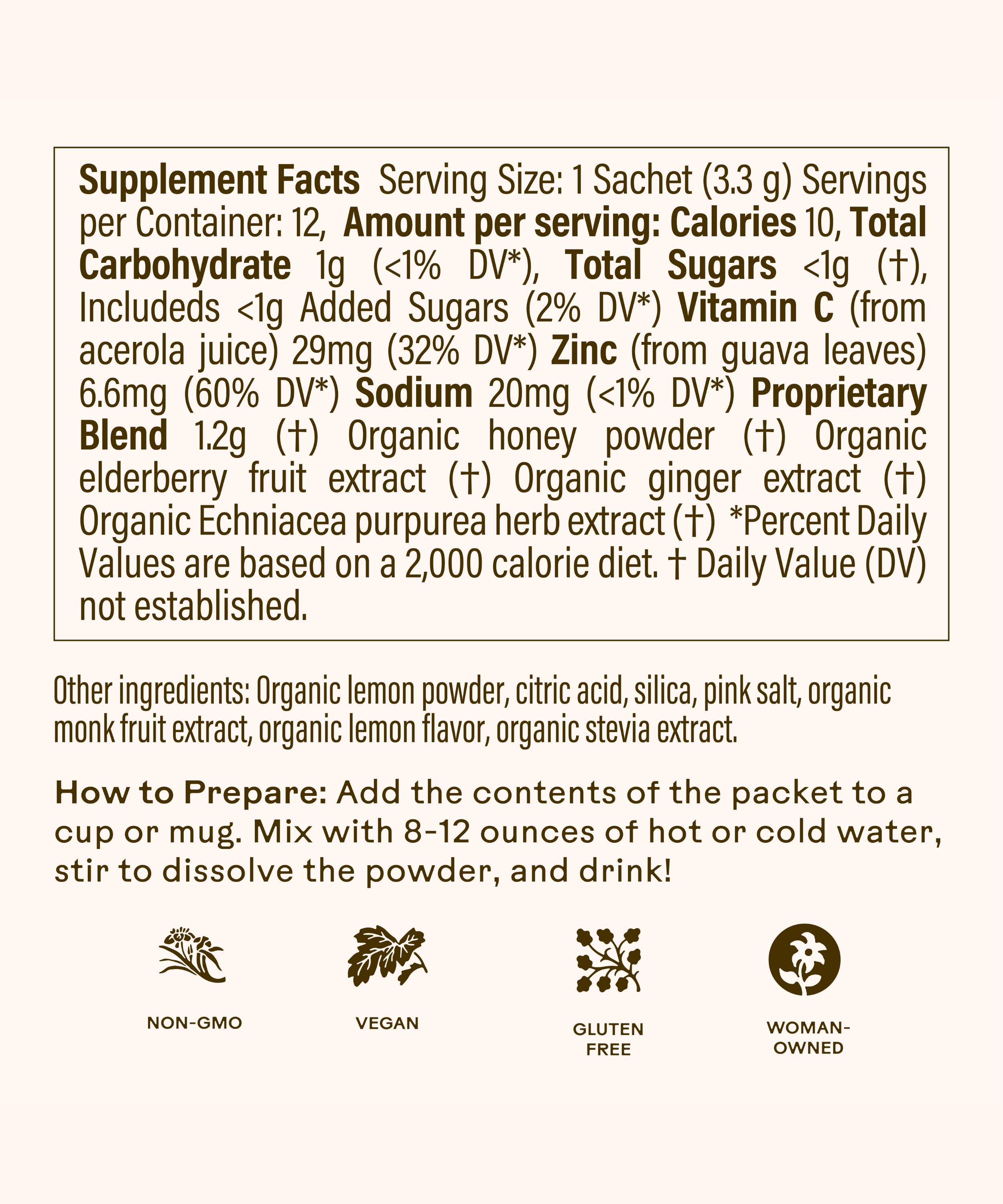 Fruity immune support for natural defense on the go. Packed with essential nutrients your body needs to feel its best, like elderberry, echinacea, zinc and vitamin C. Keep health in your back pocket.