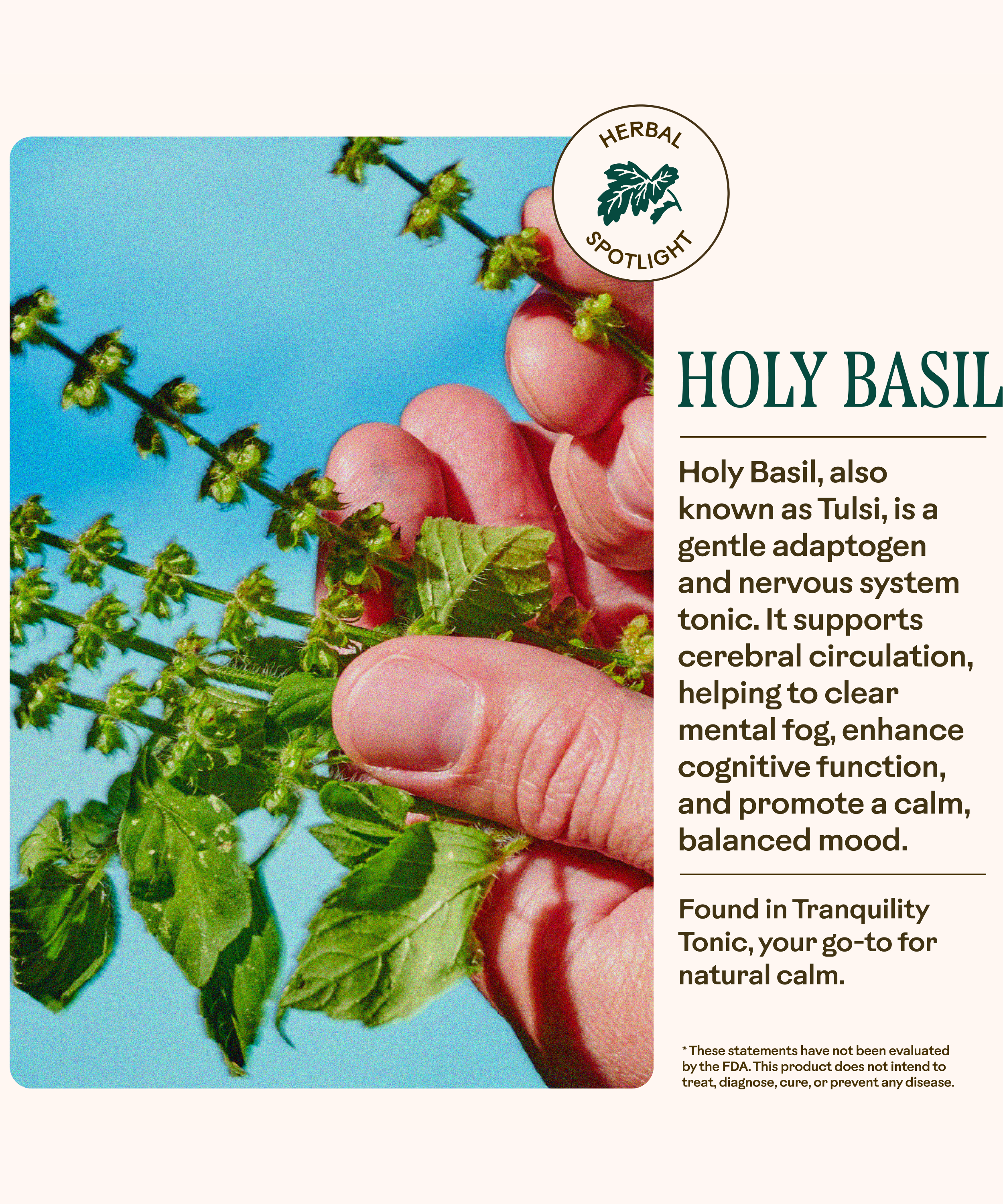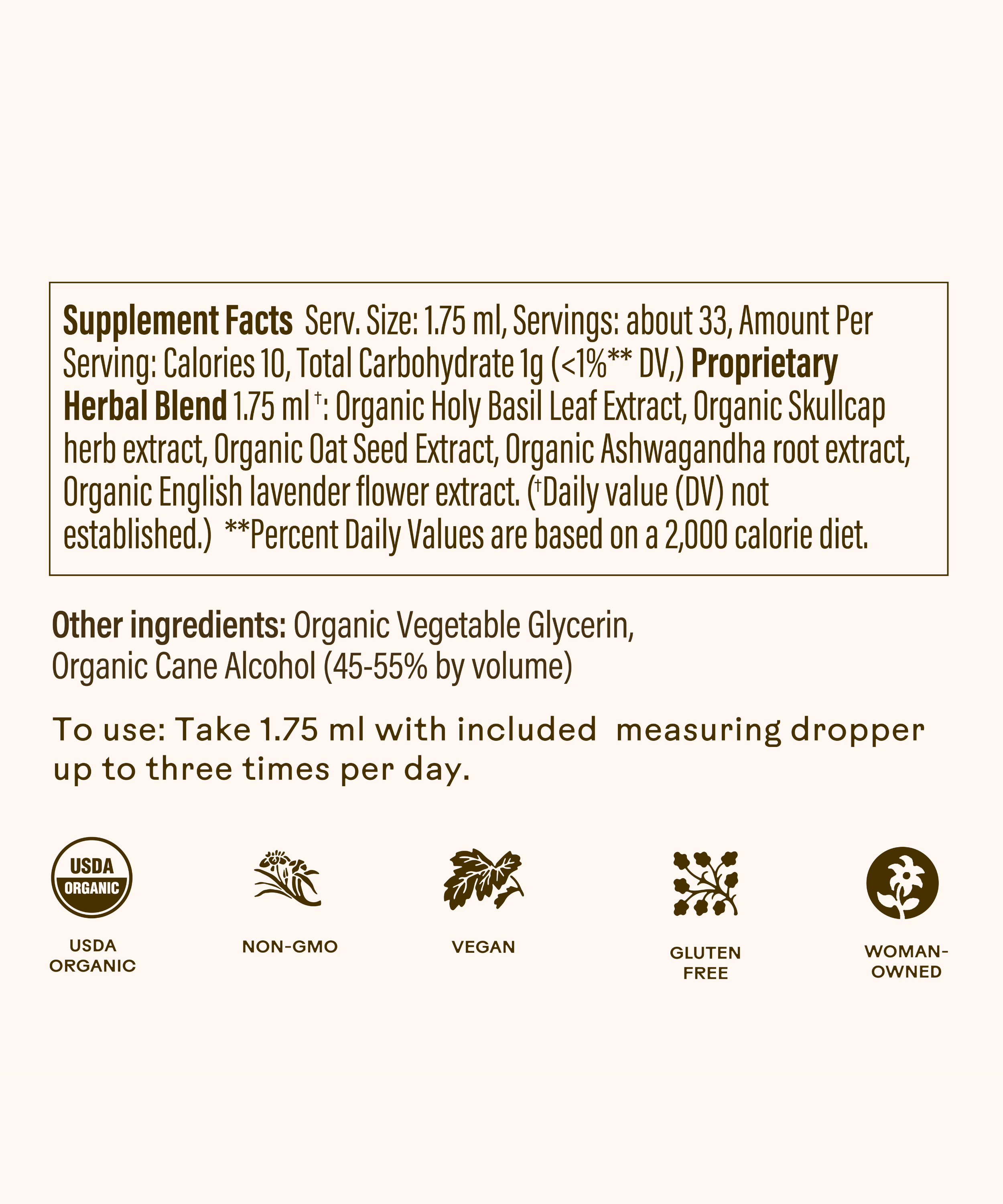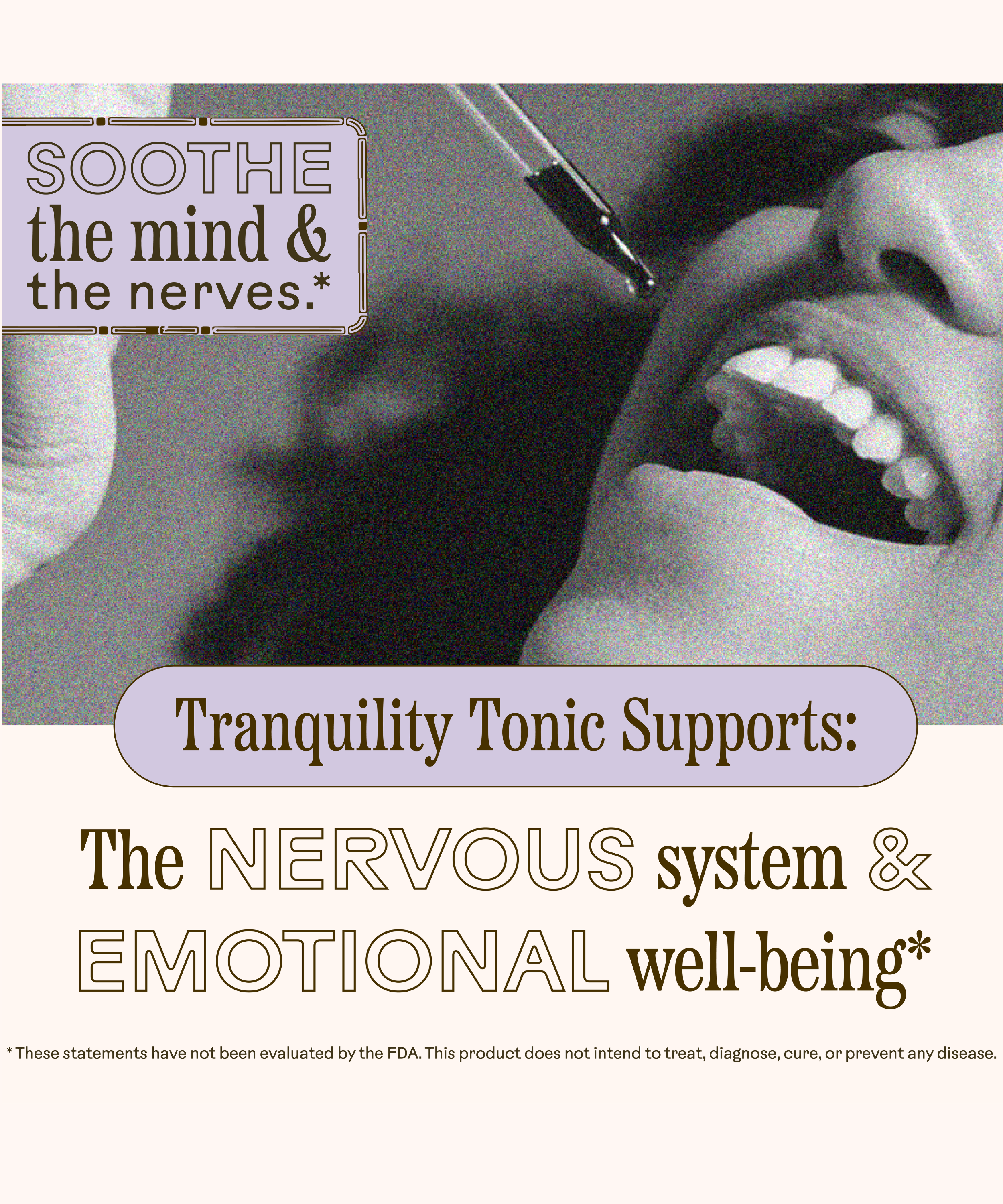 Unwind with this calming herbal blend. Tranquility Tonic is crafted with time-honored botanicals traditionally used to soothe the nervous system and support a sense of inner peace. A great herbal supplement for winding down after a long day or finding stillness in a busy moment.