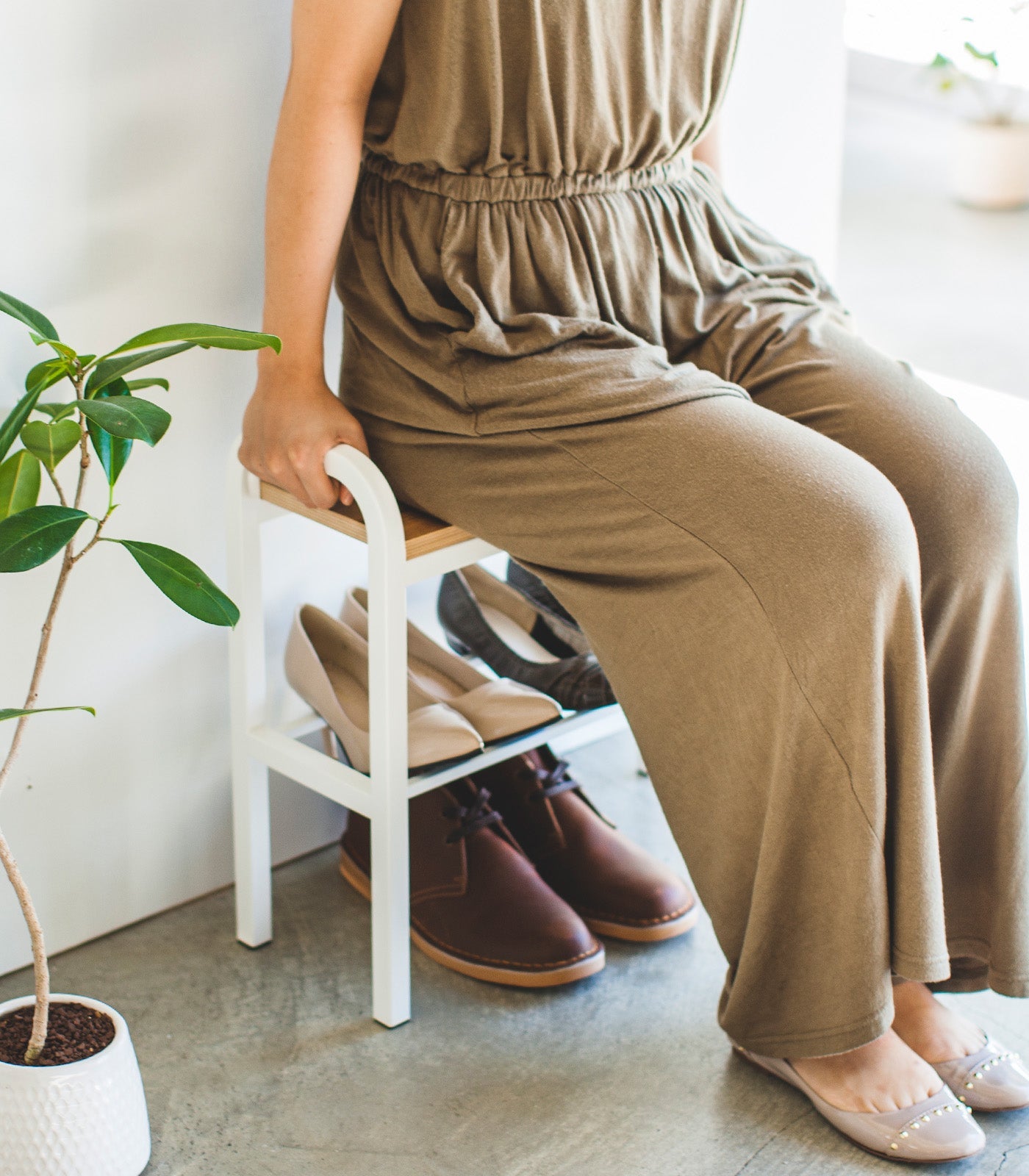 Shoe Organizer & Bench (18" H) - Steel + Wood