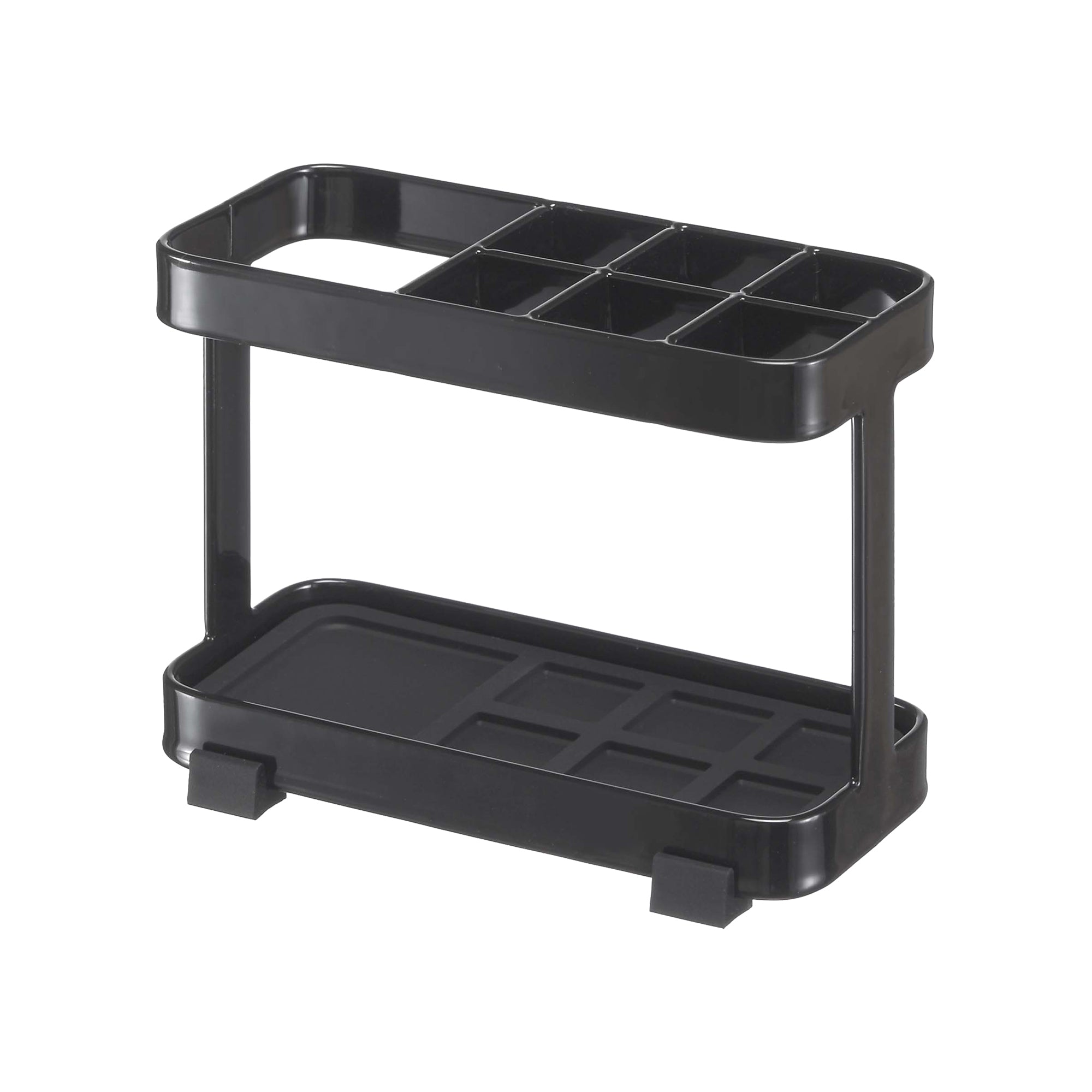 The whole tooth and nothing but the tooth. One million and one times better than a toothbrush cup. This smart sink organizer offers individual slots for toothpaste, brushes and other dental tools. The design keeps toothbrushes upright and in their own lane, never touching one another. Not only is this open-frame design more sanitary, but it’s easier to clean, too. The bottom tray pops out, making clean-up much easier than reaching for the bottom of a cup.