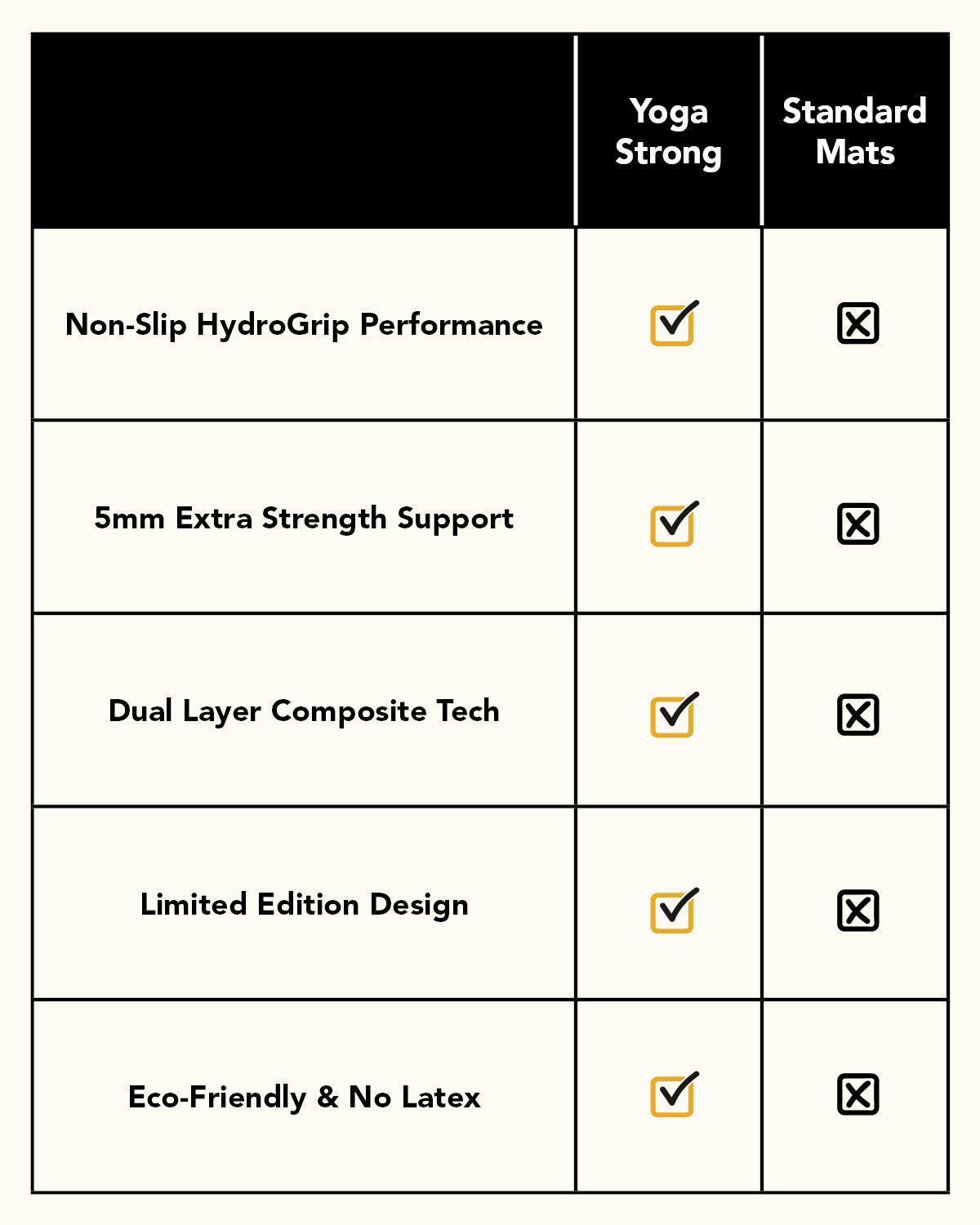 Experience the Yoga Strong Mat, meticulously designed for years by our team of yoga experts, athletes, and health practitioners, to address your exact concerns and provide unparalleled stability, confidence, and comfort.