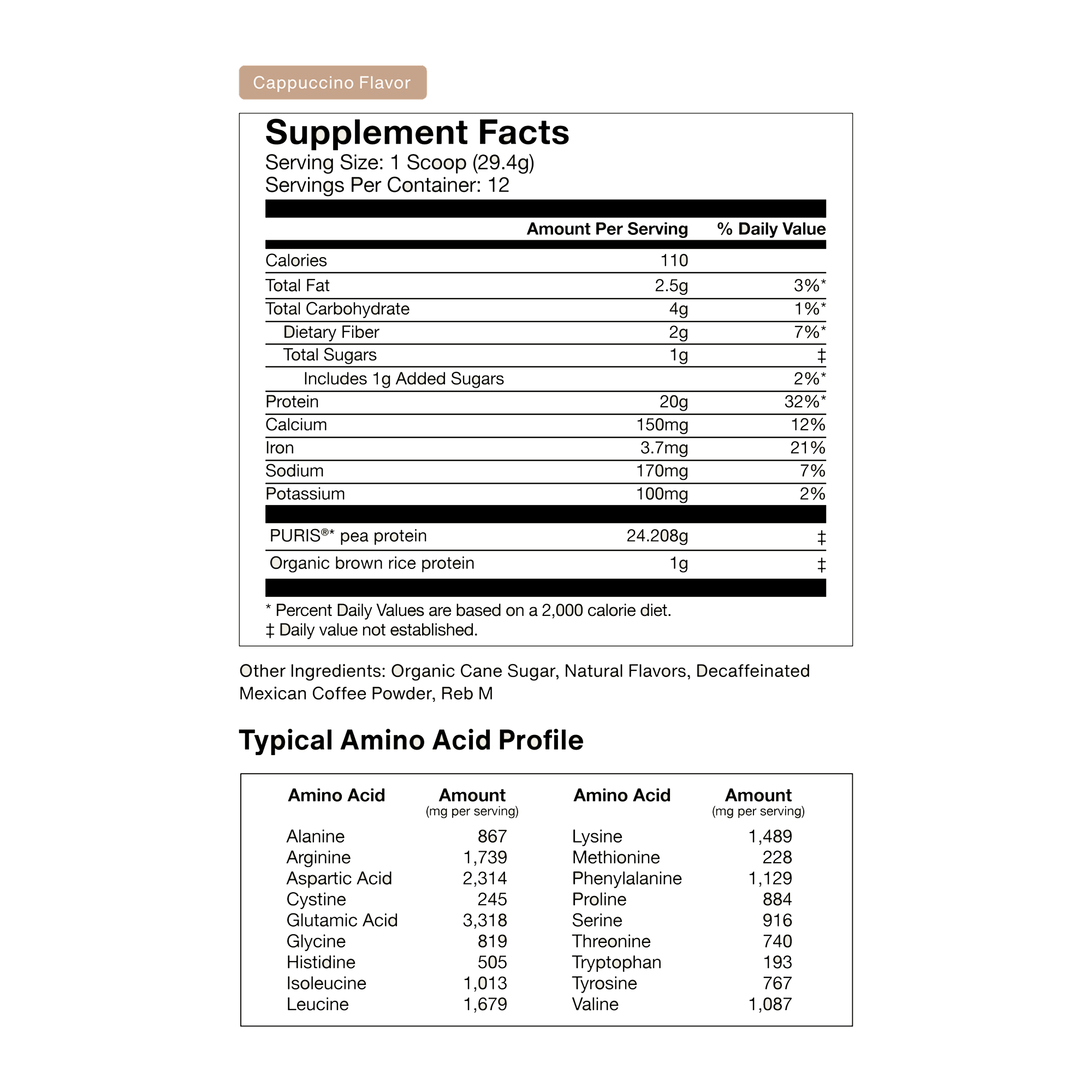 Consistency unlocks results, and variety helps you stay consistent. Our limited-edition Vegan Protein Powder in Cappuccino flavor, features the same clean, effective 100% Plant-Based Protein you trust. This smooth, coffee-inspired blend delivers a complete amino acid profile from pea and brown rice protein, with no artificial sweeteners, gums, or fillers. With a smooth cappuccino taste, it’s perfect for upgrading your post-workout recovery shake or daily coffee ritual—without compromising on quality.