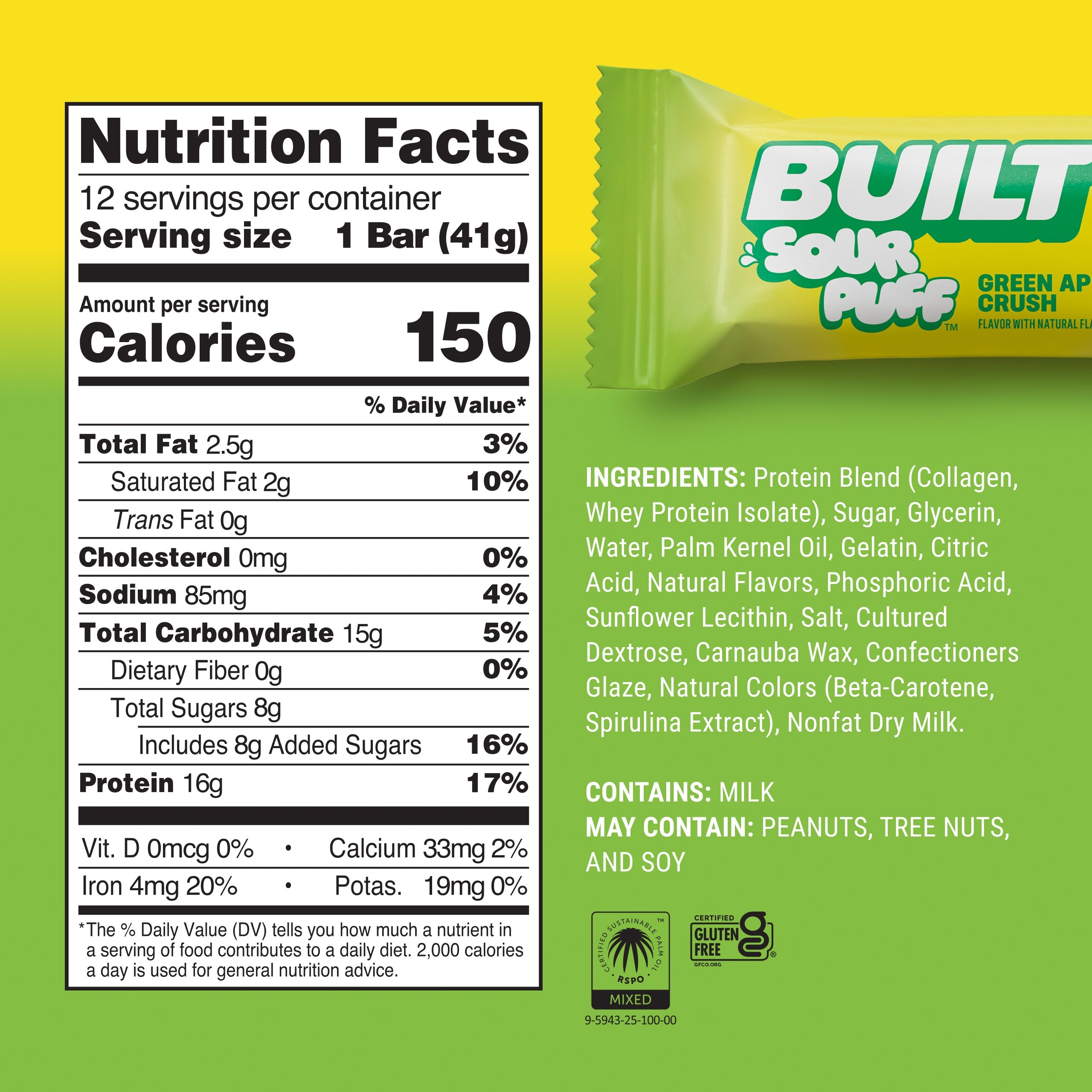Introducing BUILT Sour Puff! The marshmallowy, protein-packed, goodness of BUILT Puff you know and love, with a tangy center -- a sweet and tart coating -- and topped with crunchy sugar sprinkles!