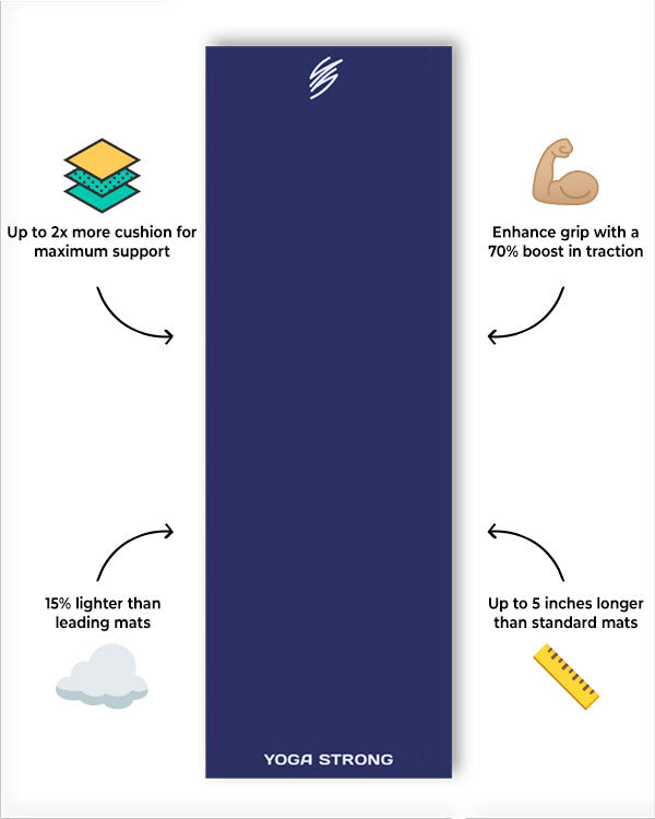 Experience the Yoga Strong Mat, meticulously designed for years by our team of yoga experts, athletes, and health practitioners, to address your exact concerns and provide unparalleled stability, confidence, and comfort.